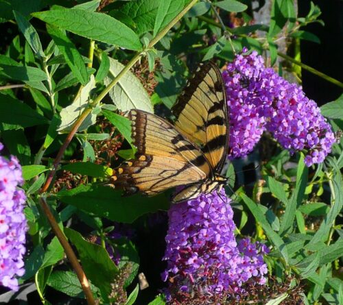 Butterflies are attracted by certain, specific plants. Two kinds of plants… host plants that they lay eggs on, and nectar-producing plants that the adult butterflies need for food.